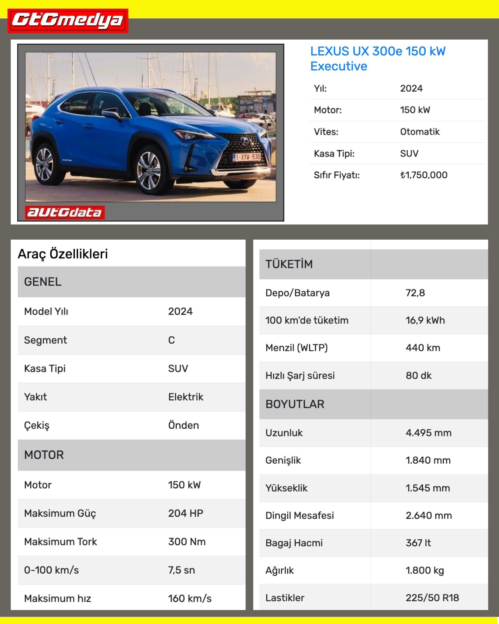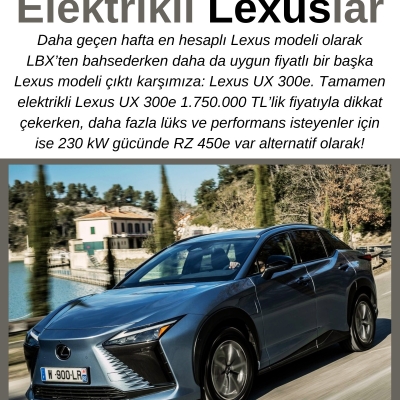 Daha geçen hafta en hesaplı Lexus modeli olarak LBX’ten bahsederken daha da uygun fiyatlı bir başka Lexus modeli çıktı karşımıza: Lexus UX 300e. Tamamen elektrikli Lexus UX 300e 1.750.000 TL’lik fiyatıyla dikkat çekiyor.
